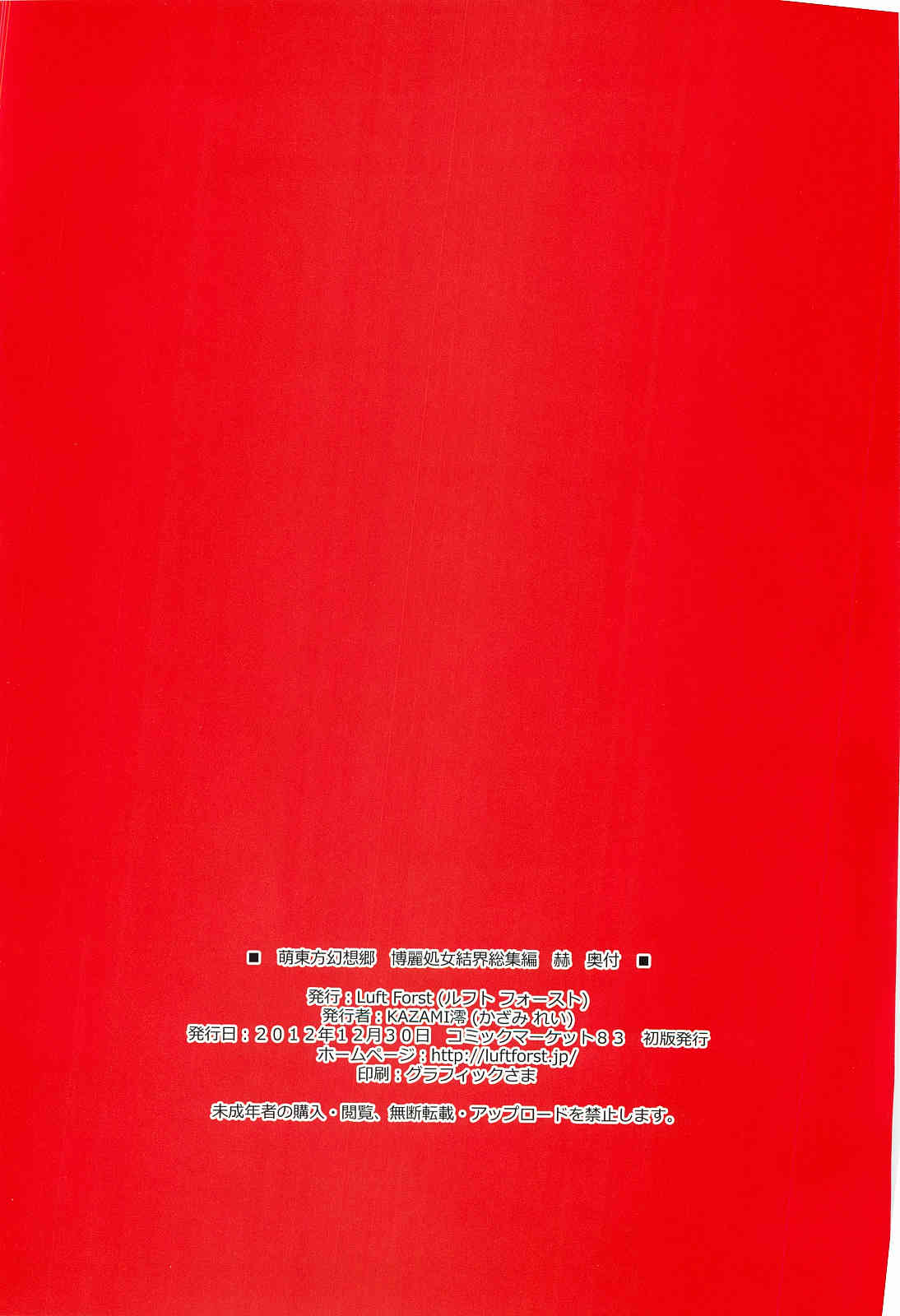 (C83) [Luft Forst (KAZAMI澪)] 萌え東方幻想郷 博麗処女結界 総集編 赫 (東方Project)Report (C83) [Luft Forst (Kazami Rei)] Moe Touhou Gensoukyou - Hakurei Shojo Kekkai Soushuuhen Aka (Touhou Project)