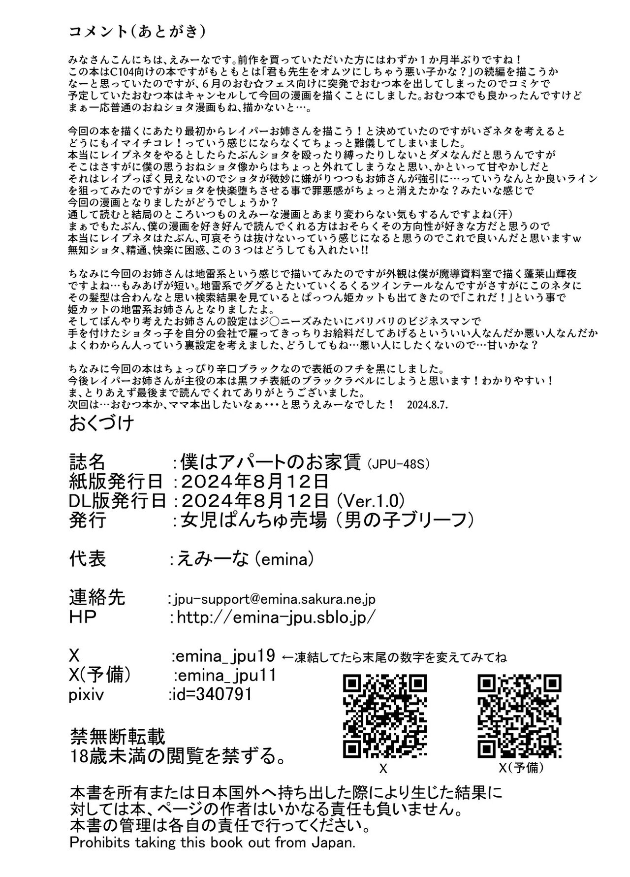 [女児ぱんちゅ売場 (えみーな)] 僕はアパートのお家賃 [中国翻訳] [DL版]