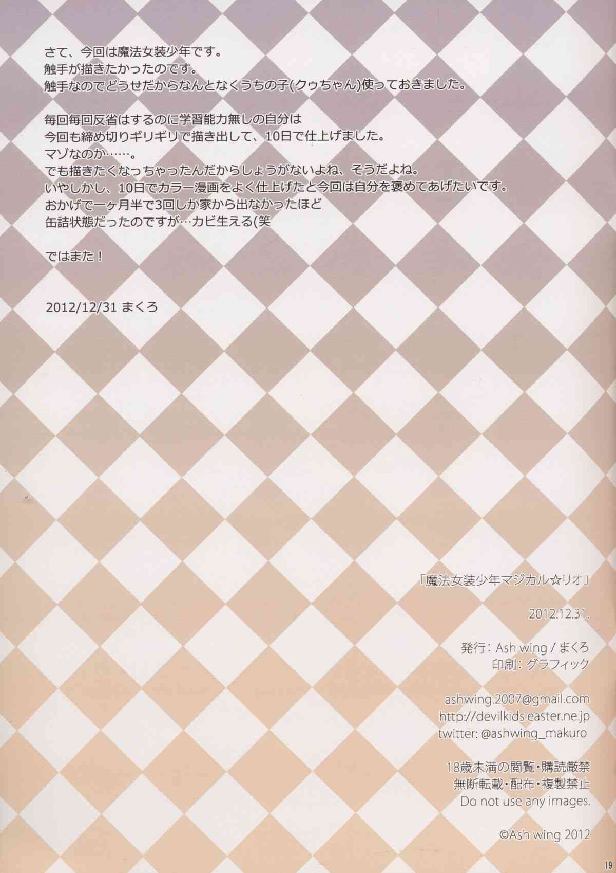 (C83) [Ash Wing (まくろ)] 魔法女装少年マジカル☆リオReport (C83) [Ash Wing (Makuro)] Mahou Josou Shounen Magical☆Rio