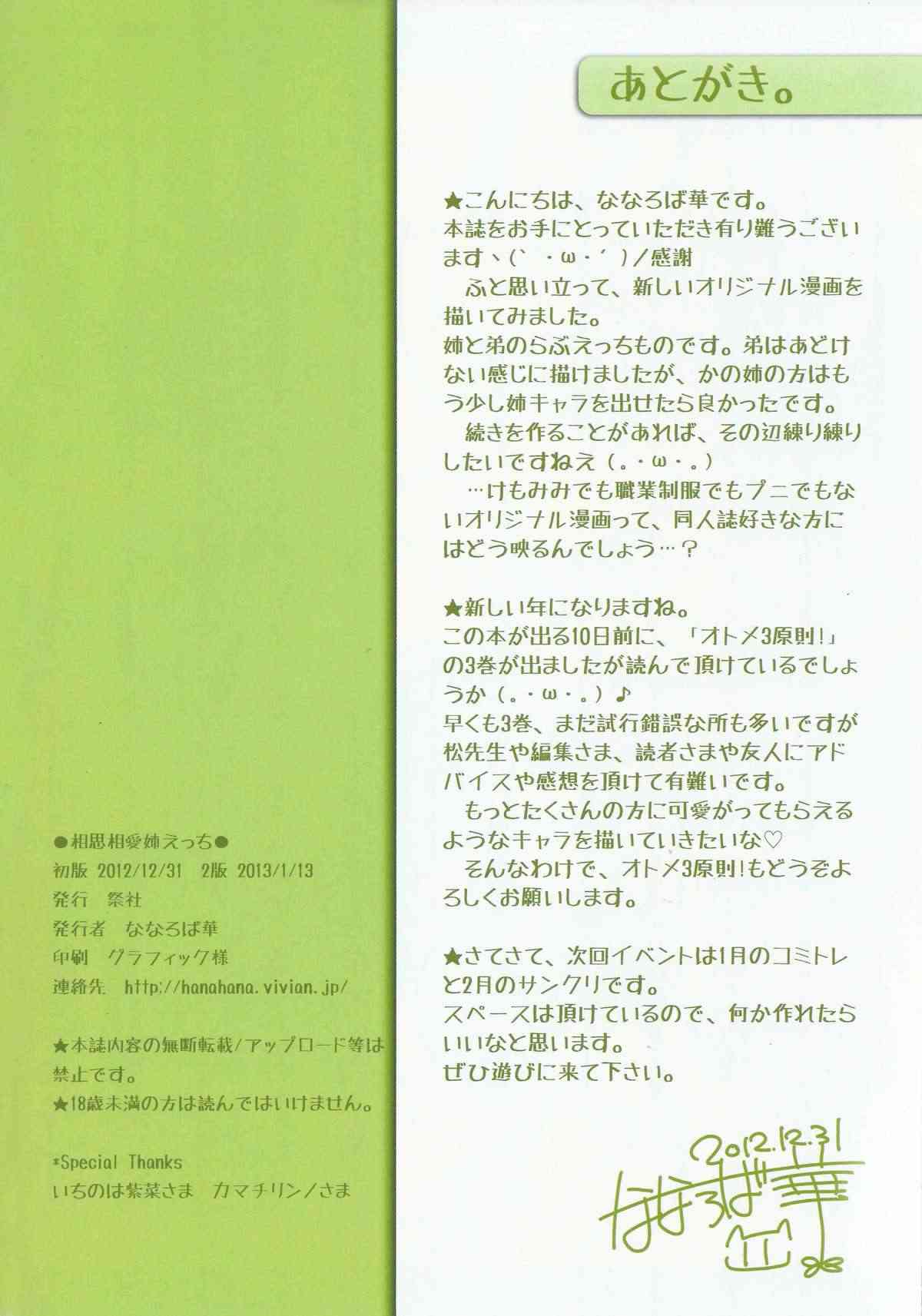 (C83) [祭社 (ななろば華)] 相思相愛姉えっちReport (C83) [Matsurija (Nanaroba Hana)] Soushisouai Ane Ecchi