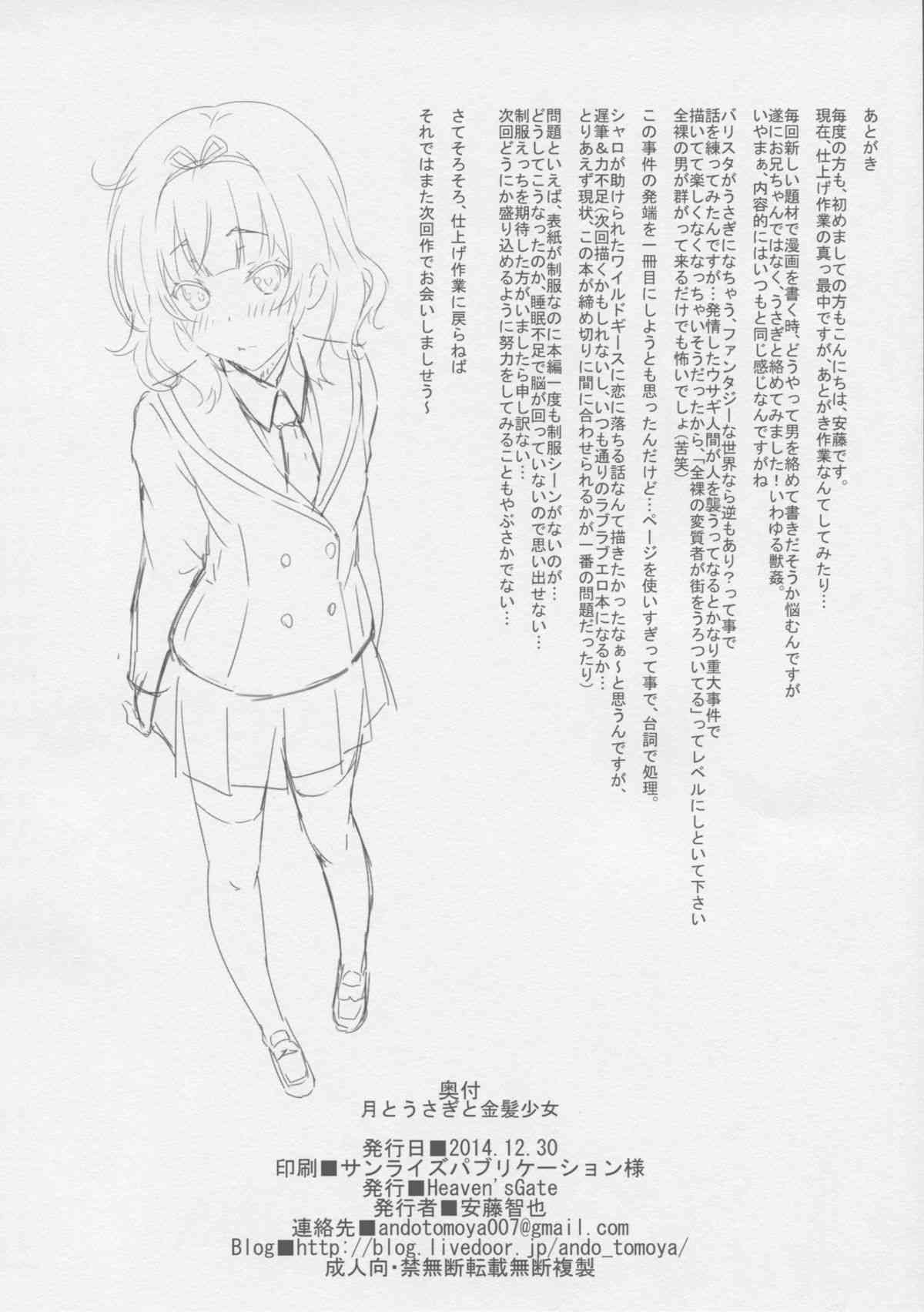 (C87) [Heaven'sGate (安藤智也)] 月とうさぎと金髪少女 (ご注文はうさぎですか?)Report (C87) [Heaven's Gate (Andou Tomoya)] Tsuki to Usagi to Kinpatsu Shoujo (Gochuumon wa Usagi desu ka?)