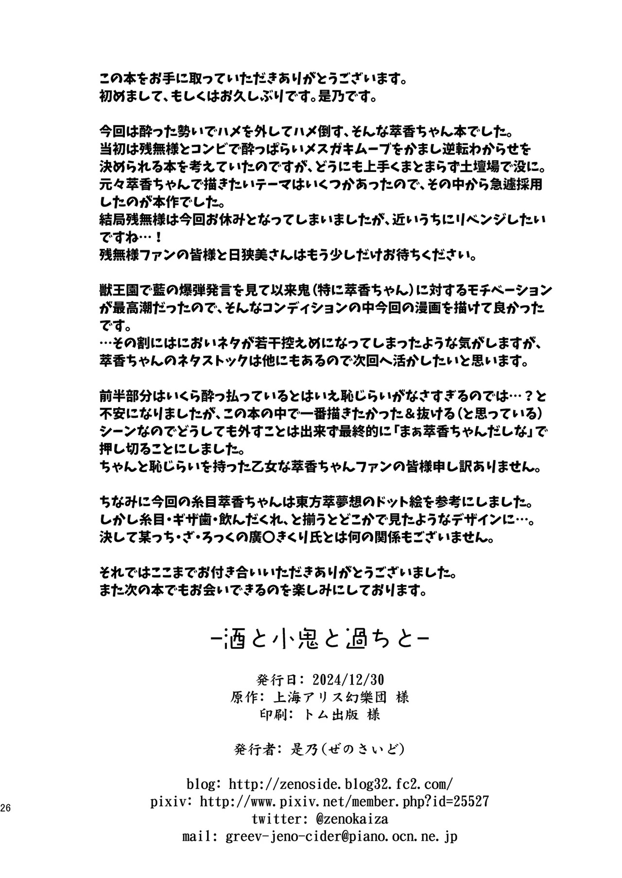 (C105) [ぜのさいど (是乃)] 酒と小鬼と過ちと (東方Project)