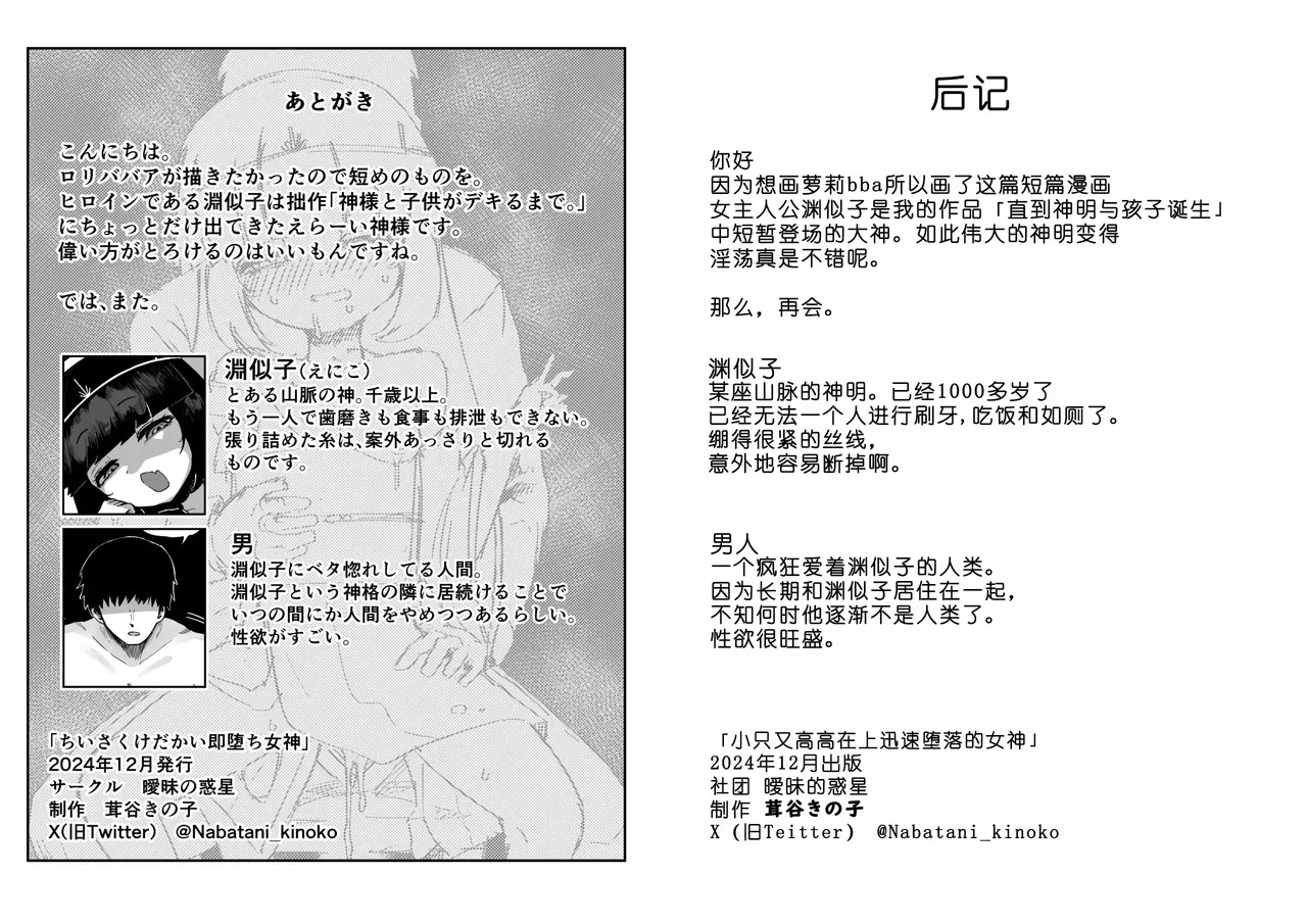 [曖昧の惑星 (茸谷きの子)] ちいさくけだかい即堕ち女神 [中国翻訳]