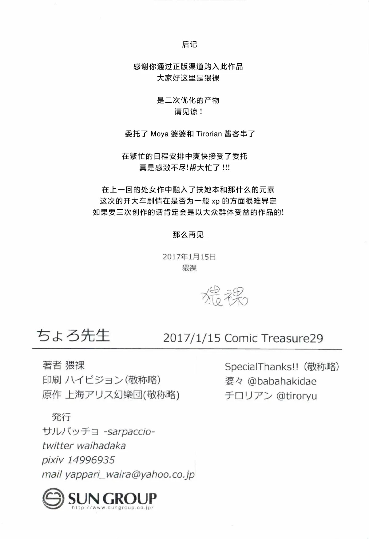(こみトレ29) [サルパッチョ (猥裸)] ちょろ先生 (東方Project) [中国翻訳]
