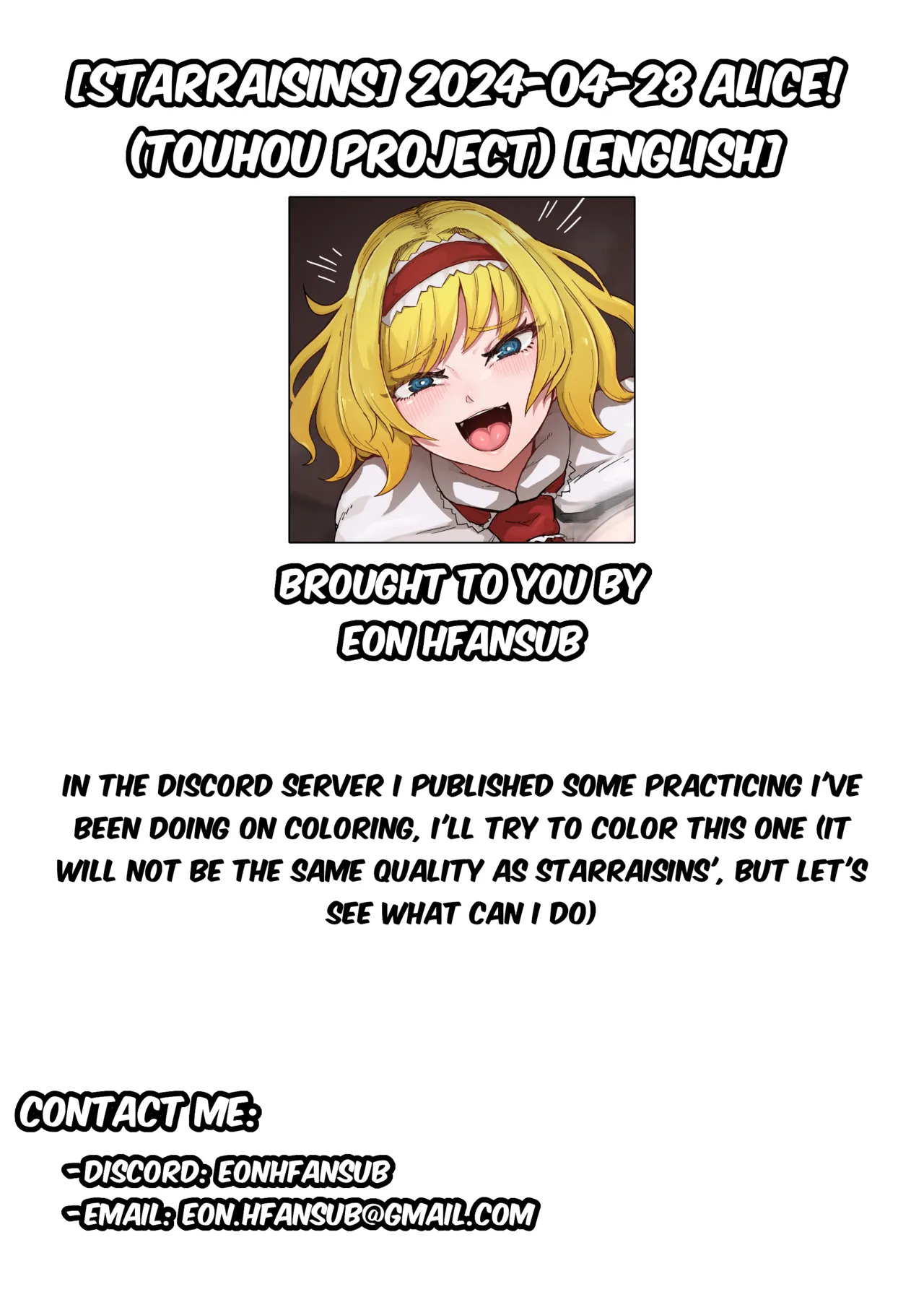 [星レーズン] 2024年4月28日 アリスさん! (東方Project)