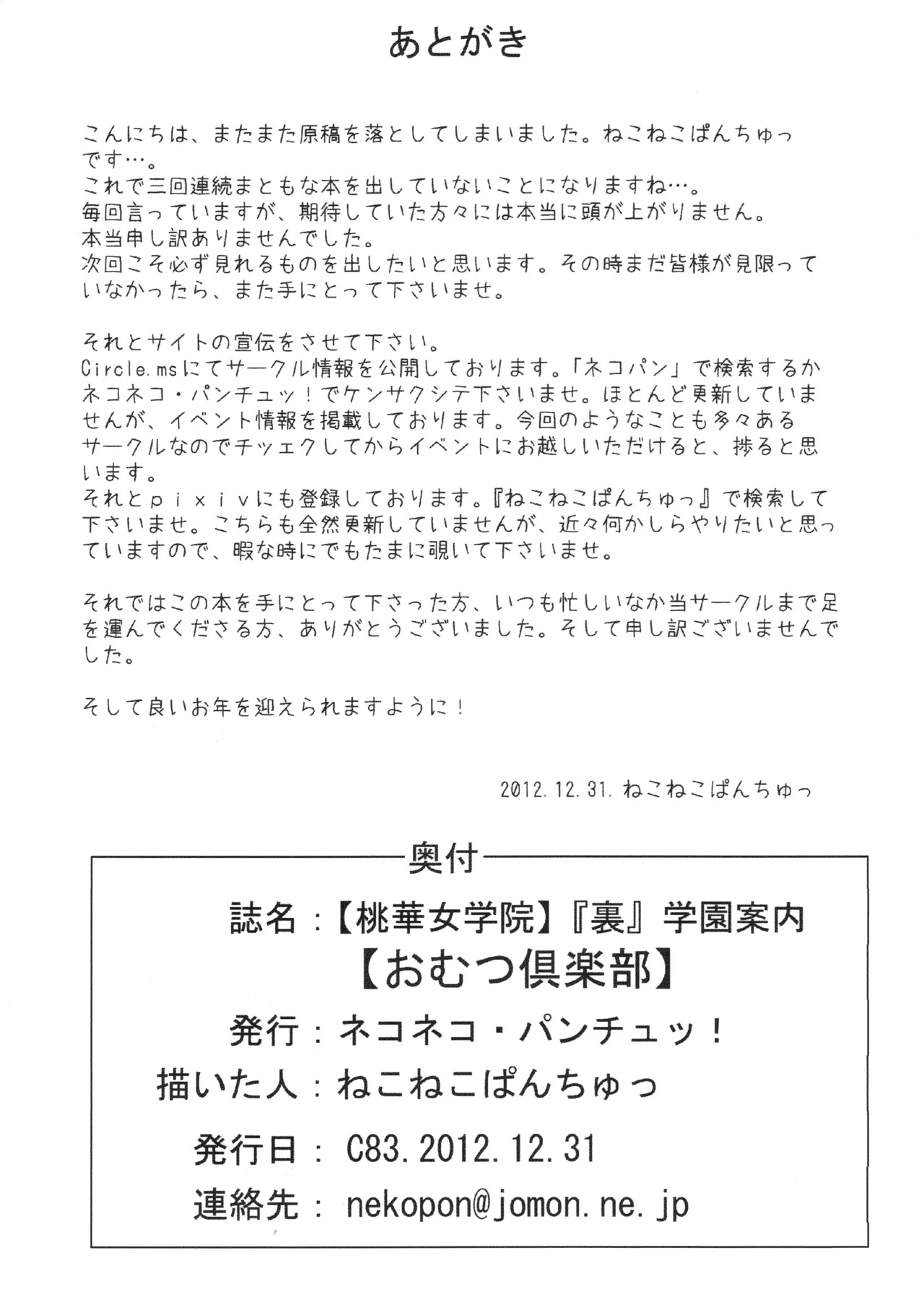 [ネコネコ・パンチュッ! ] (ねこねこぱんちゅっ) 私立桃華女学院 裏 学校案内 おむつ倶楽部
