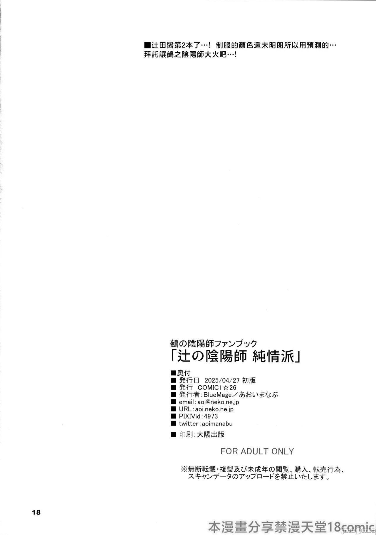 (Comic1☆26)[Blue Mage(あおいまなぶ)] 辻の陰陽師 純情派 (鵺の陰陽師)