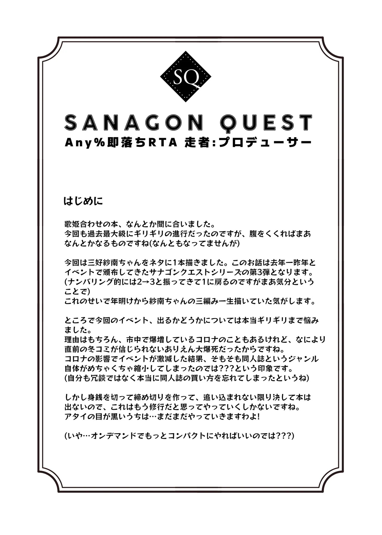 [cloudair (かつと)] サナゴンクエスト Any%即落ちRTA 走者:プロデューサー (アイドルマスター シンデレラガールズ)Report [cloudair (Katsuto)] Sanagon Quest Any% Sokuochi RTA Sousha: Producer (THE IDOLM@STER CINDERELLA GIRLS)