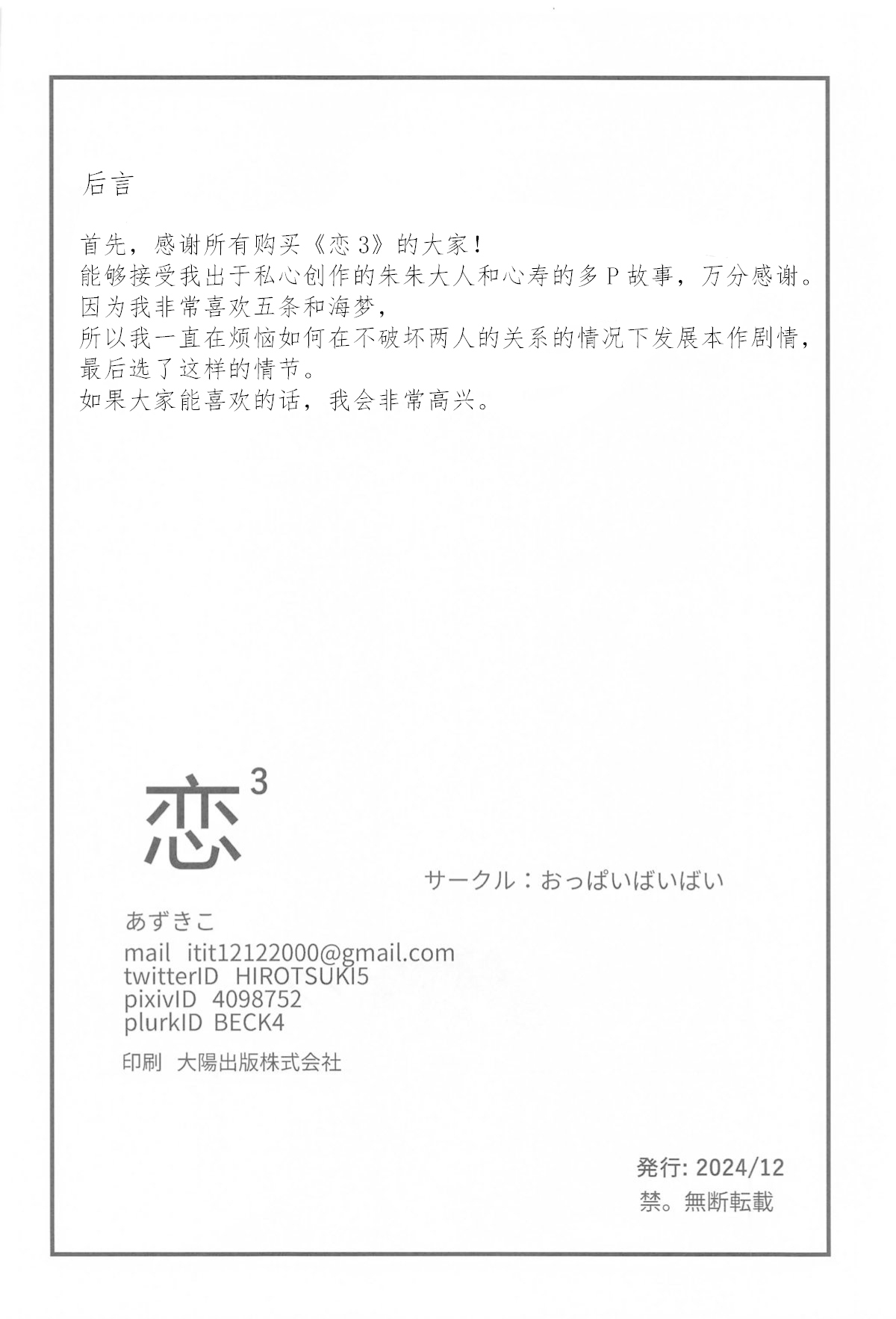 (C105) [おっぱいばいばい (あずきこ)] 恋3 (その着せ替え人形は恋をする)[中国翻訳]