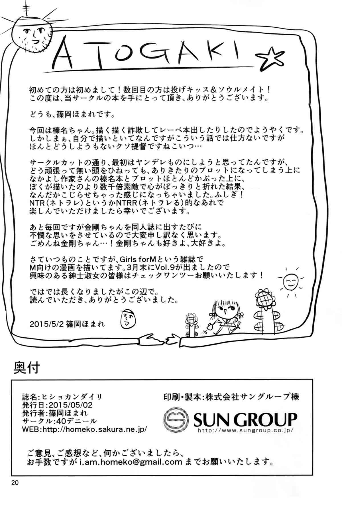 (COMIC1☆9) [40デニール (篠岡ほまれ)] ヒショカンダイリ (艦隊これくしょん -艦これ-)