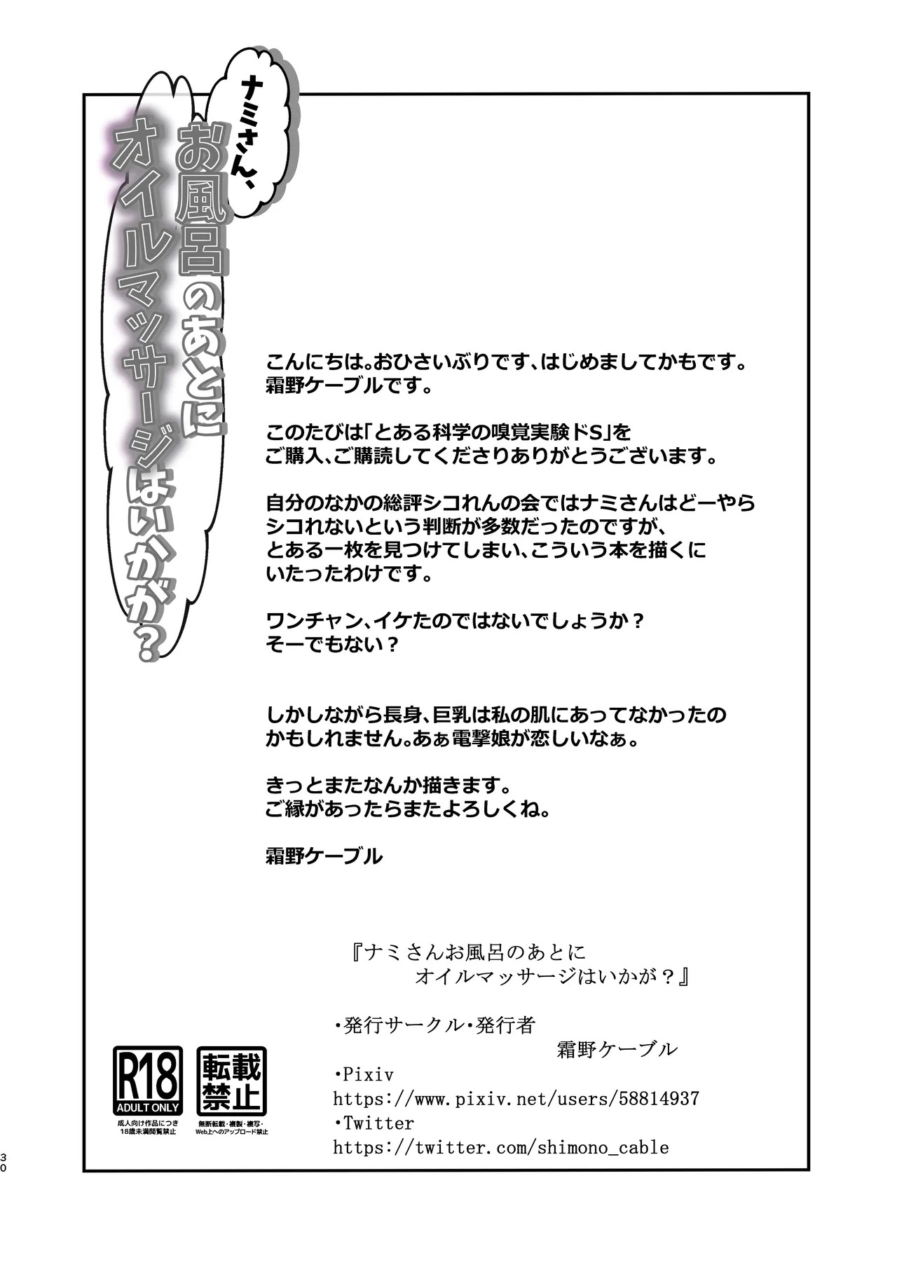 [霜野ケーブル] ナミさん、おふろのあとにオイルマッサージはいかが? (ワンピース) [DL版]