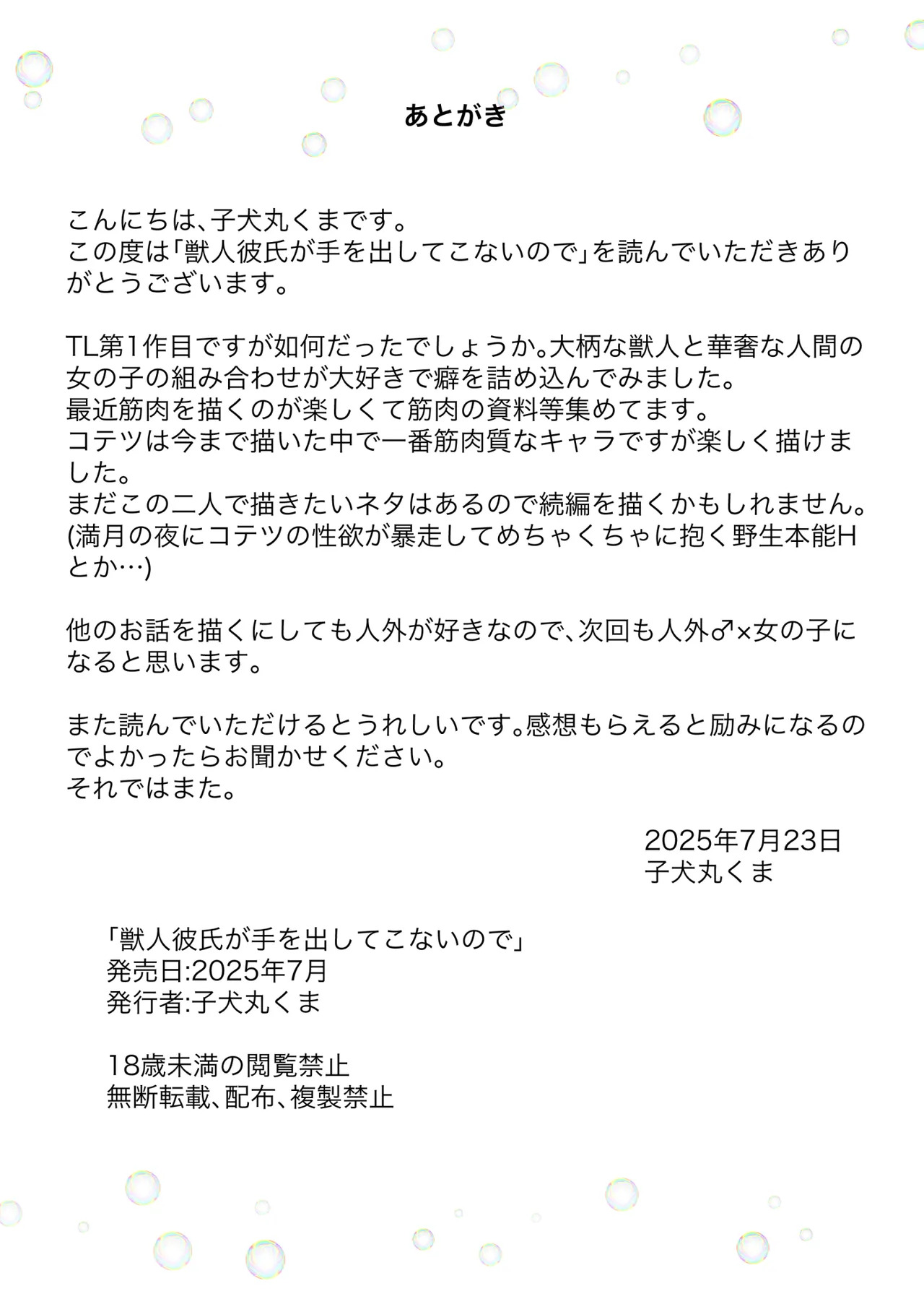[小犬丸くま] 獣人彼氏が手を出してこないので [DL版]Report [Koinumaru Kuma] Juujin kareshi ga te o dashite konai node [Digital]
