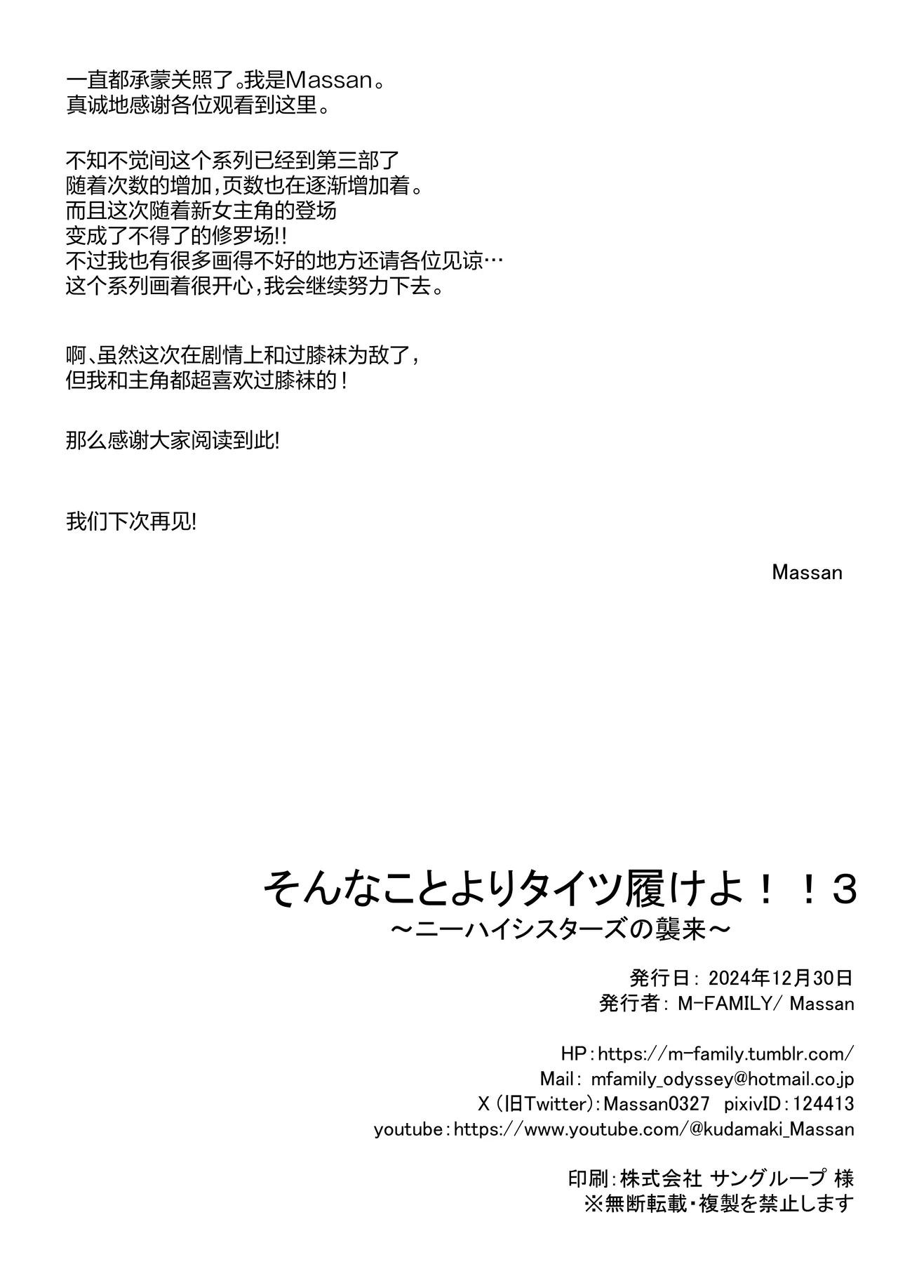 [M‐FAMILY (Massan)] そんなことよりタイツ履けよ!!3 〜ニーハイシスターズの襲来〜 [中国翻訳] [DL版]