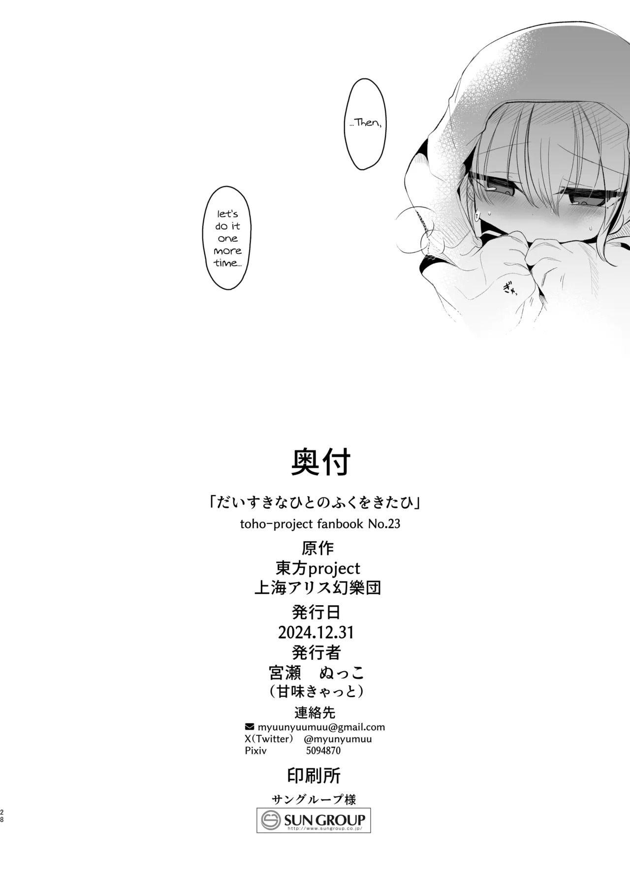 [甘味きゃっと (宮瀬ぬっこ)] だいすきなひとのふくをきたひ (東方Project) [英訳] [DL版]