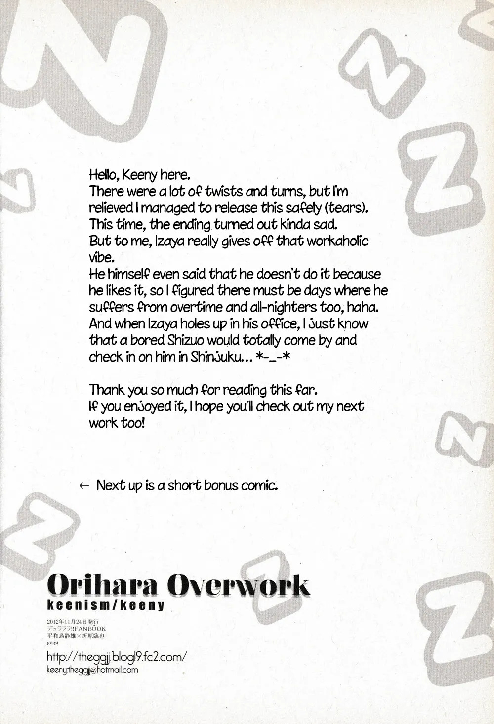 [Keenism] Orihara Overwork – Durarara dj [Eng]