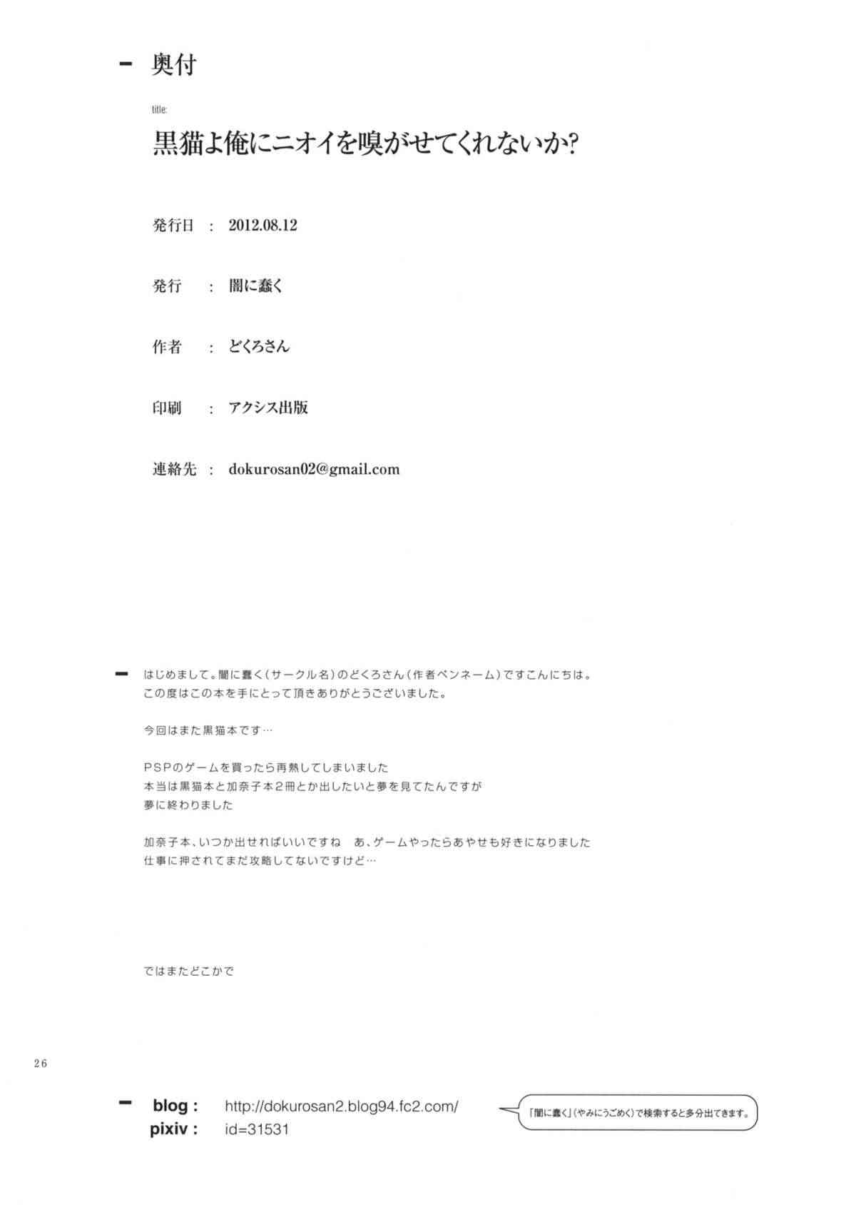 (C82) [闇に蠢く (どくろさん)] 黒猫よ俺にニオイを嗅がせてくれないか? +ペーパー (俺の妹がこんなに可愛いわけがない)