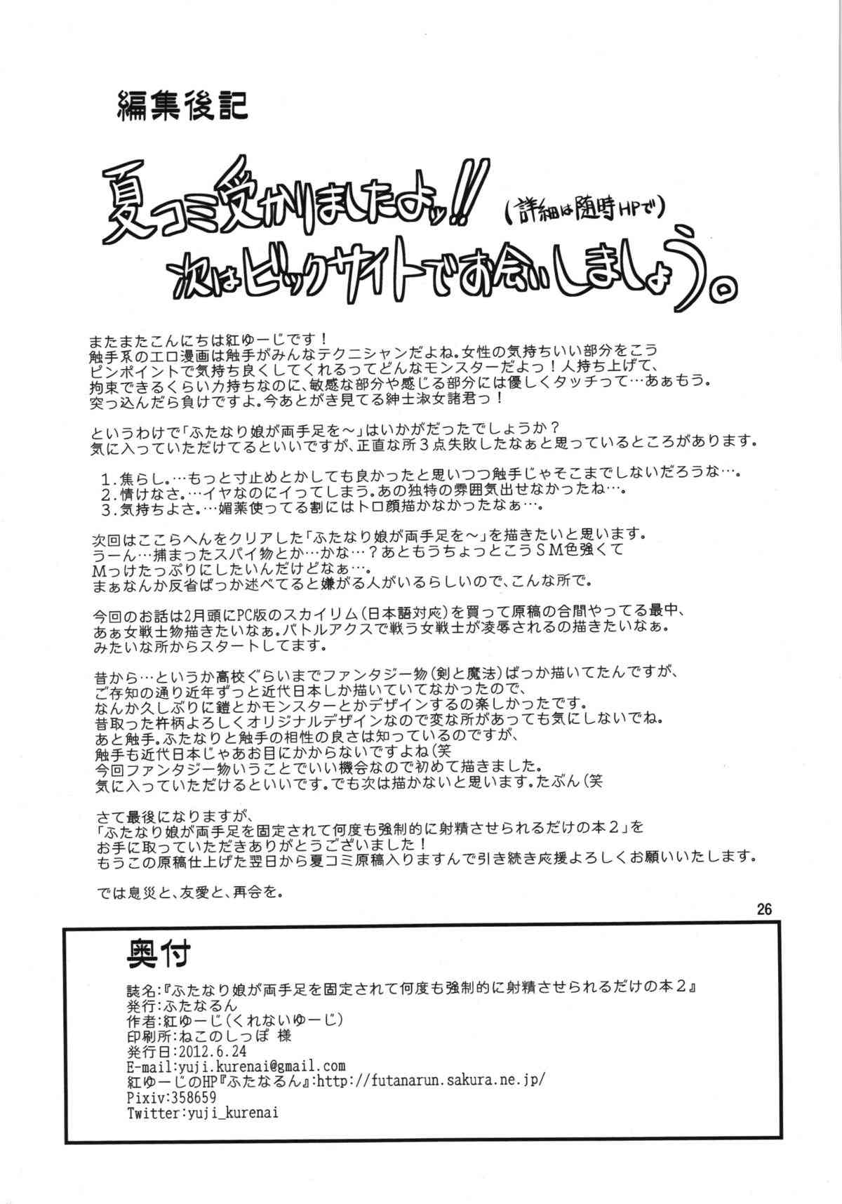 (サンクリ56) [ふたなるん (紅ゆーじ)] ふたなり娘が両手足を固定されて何度も強制的に射精させられるだけの本2 (オリジナル)Report (SC56) [Futanarun (Kurenai Yuuji)] Futanari Musume ga Ryouteashi wo Kotei Sarete Nando mo Kyouseiteki ni Shasei Saserareru dake no Hon 2 (Original)