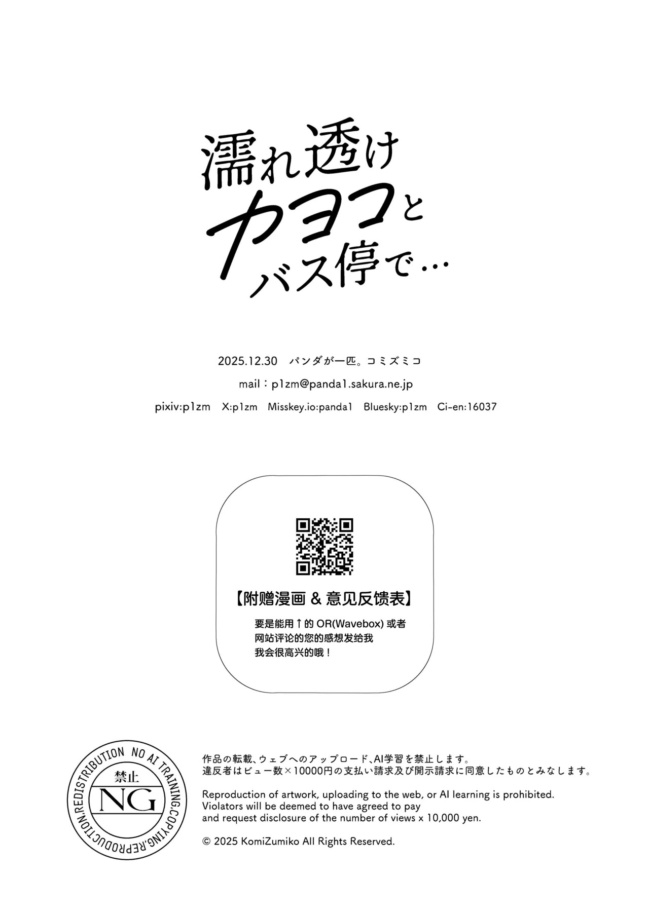 [パンダが一匹。 (コミズミコ)] 濡れ透けカヨコとバス停で... + おまけ漫画 あの日のその後... (ブルーアーカイブ) [中国翻訳] [DL版]
