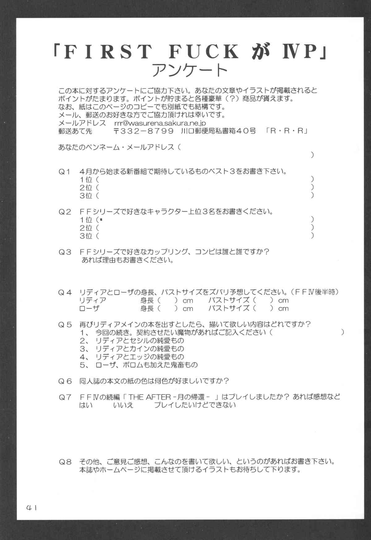 [Red Ribbon Revenger] FIRST FUCKがIVP (ファイナルファンタジー IV)