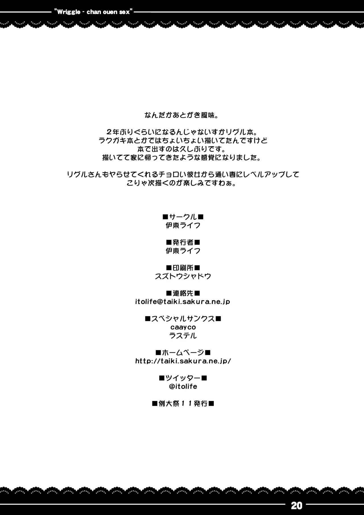 (例大祭11) [伊東ライフ (伊東ライフ)] りぐるちゃん応援せっくす(東方Project) [DL版]Report (Reitaisai 11) [Itou Life (itou life)] Wriggle-chan Ouen Sex (Touhou Project) [Digital]