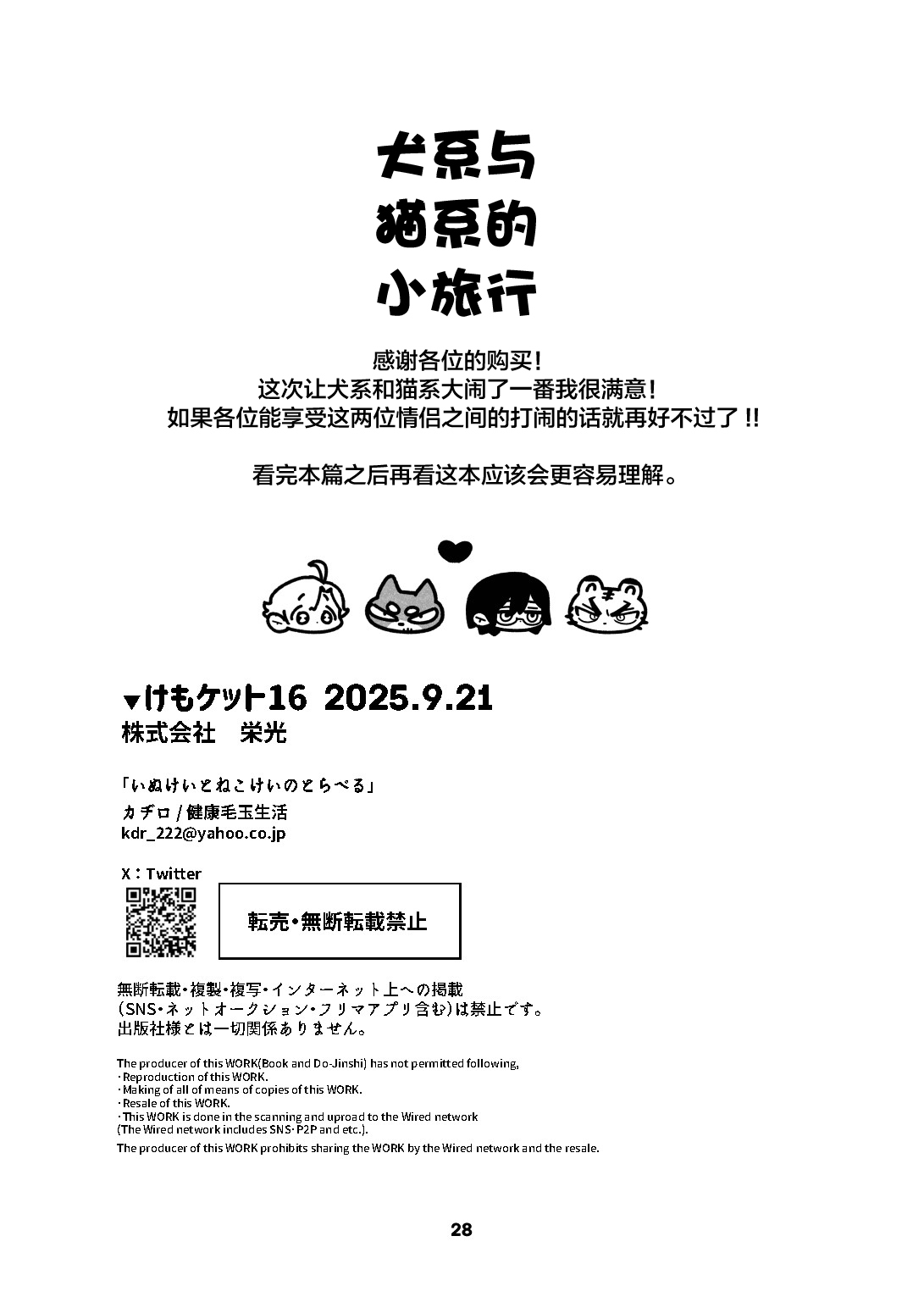 (けもケット16) [健康毛玉生活 (カヂロ)] いぬけいとねこけいのとらべる [デジタル] [中国翻訳]Report (Kemoket 16) [Kenkou Kedama Seikatsu (Kadiro)] Inukei to Nekokei no Travel | 犬系与猫系的小旅行 [Digital] [Chinese] [神州国光社]