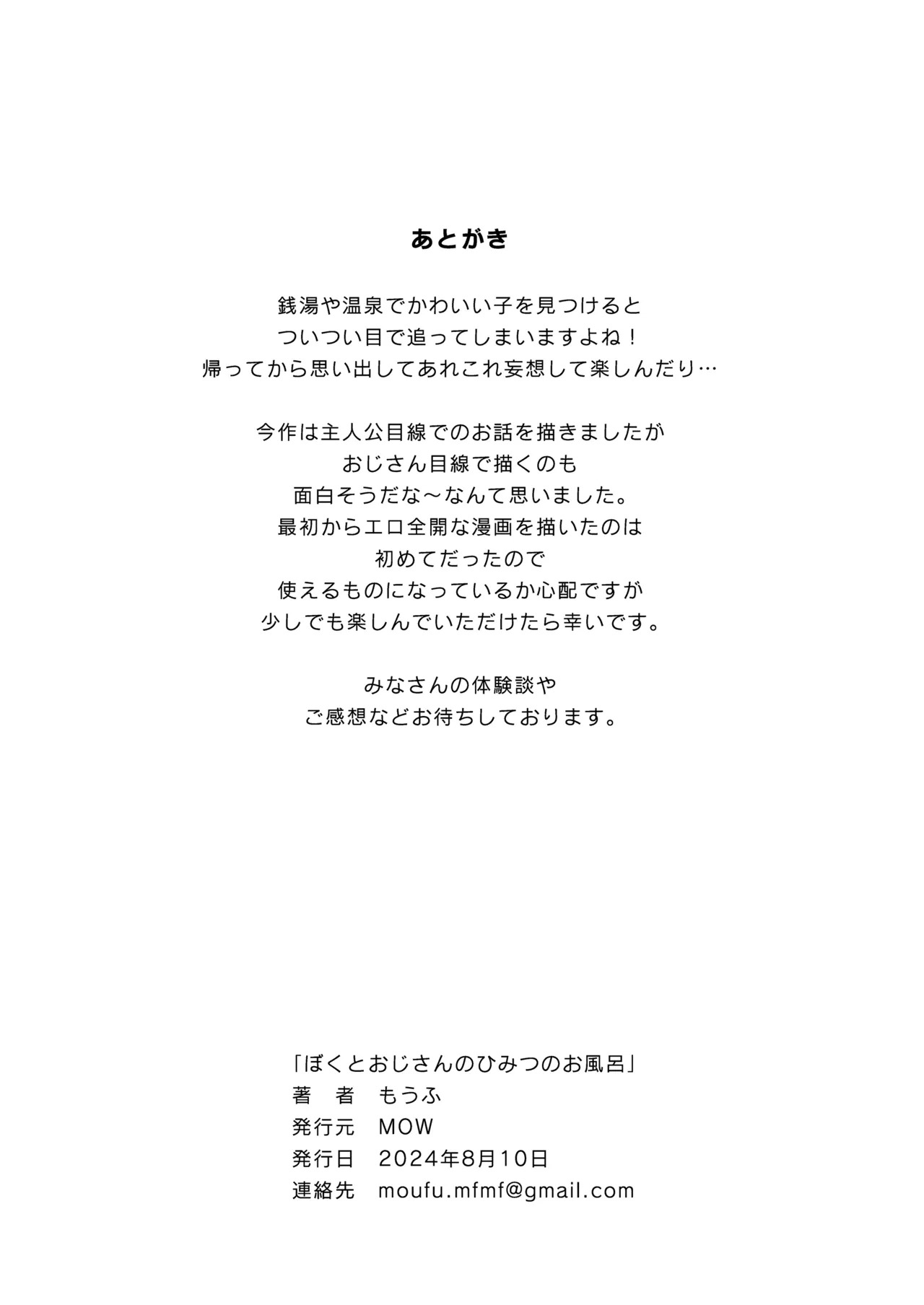 [MOW (もうふ)] ぼくとおじさんのひみつのお風呂 [DL版]Report [MOW (Moufu)] Boku to ojisan no himitsu no o furo [Digital]