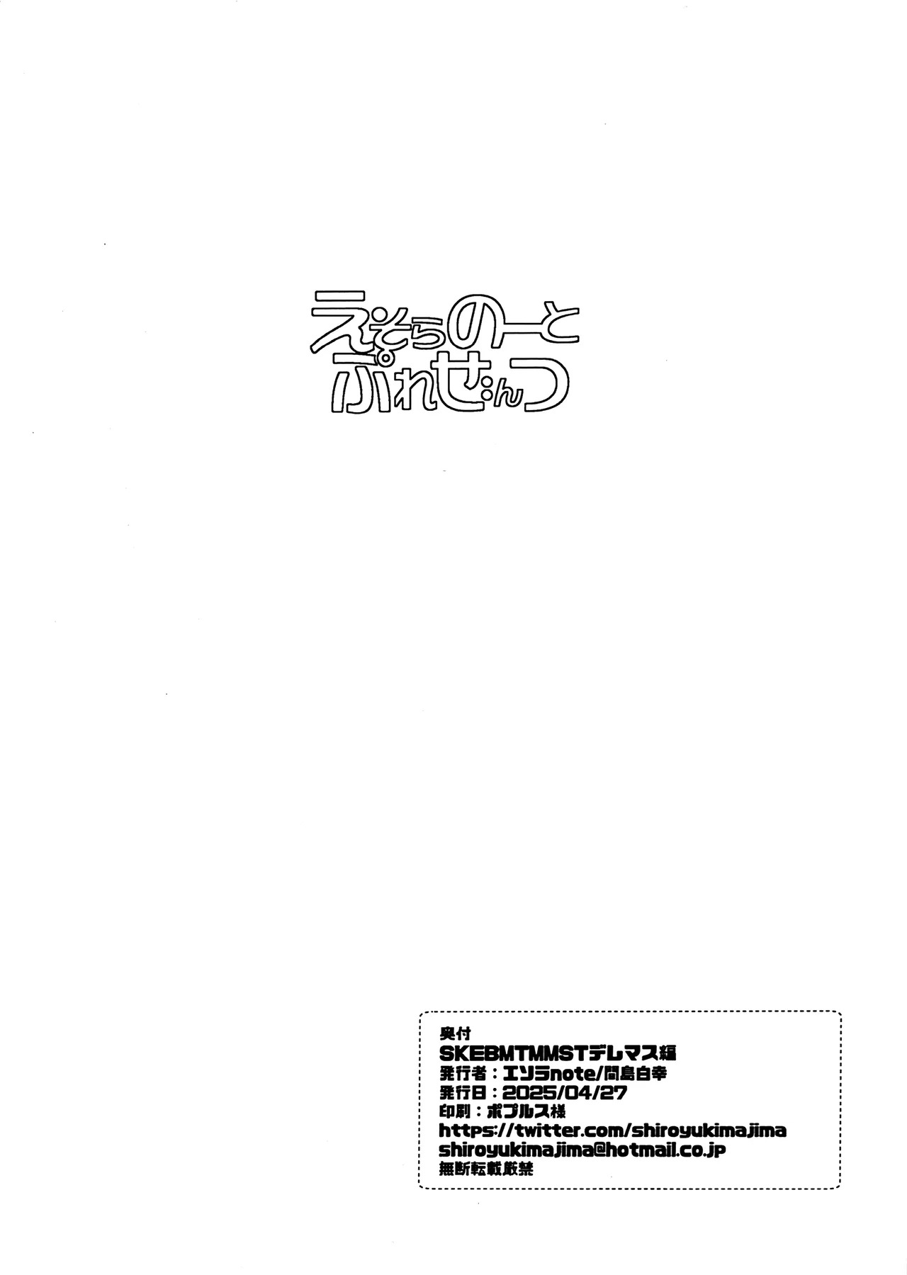 (COMIC1☆26) [エソラnote (間島白幸)] SKEBMTMMSTデレマス編 feat. 相葉夕美 (アイドルマスター シンデレラガールズ)Report (COMIC1☆26) [Esora note (Majima Shiroyuki)] SKEBMTMMST DereM@S Hen feat. Aibayumi (THE IDOLM@STER CINDERELLA GIRLS)