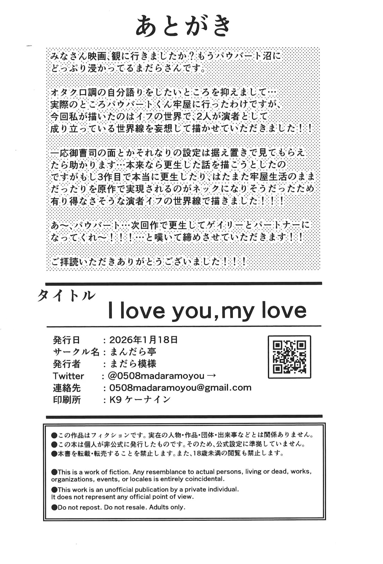 (新春けもケット12) [まんだら亭 (まだら模様)] I love you, my love. (ズートピア)Report (Shinshun Kemoket 12) [Mandaratei (Madara Moyou)] I love you, my love. (Zootopia)
