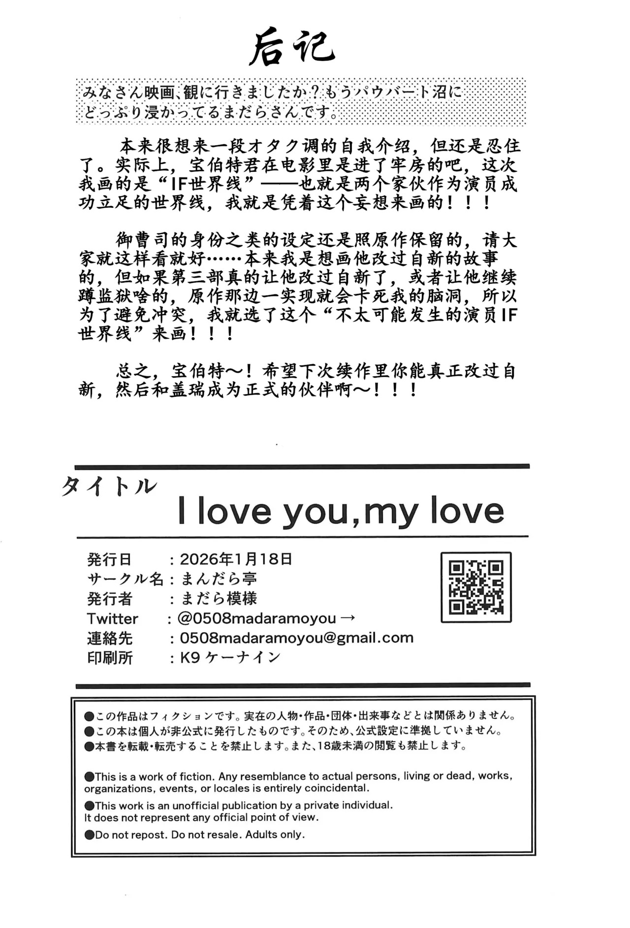 (新春けもケット12) [まんだら亭 (まだら模様)] I love you, my love. (ズートピア)Report (Shinshun Kemoket 12) [Mandaratei (Madara Moyou)] I love you, my love. (Zootopia)[简体中文][Blagru个人汉化]
