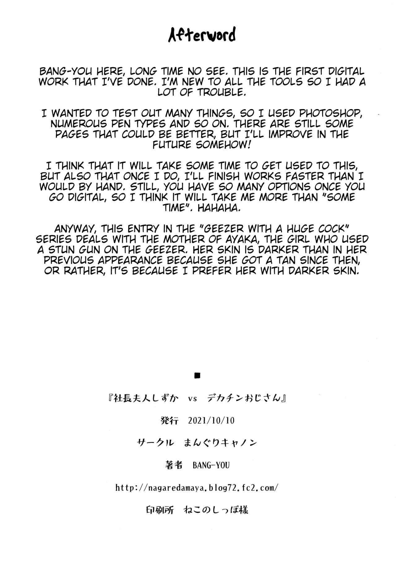 Report [Manguri Cannon (BANG-YOU)] Shachou Fujin Shizuka vs Dekachin Oji-san A Company President's Wife vs A Geezer with a Huge Cock [English] [joobuspaidatl] [Digital]