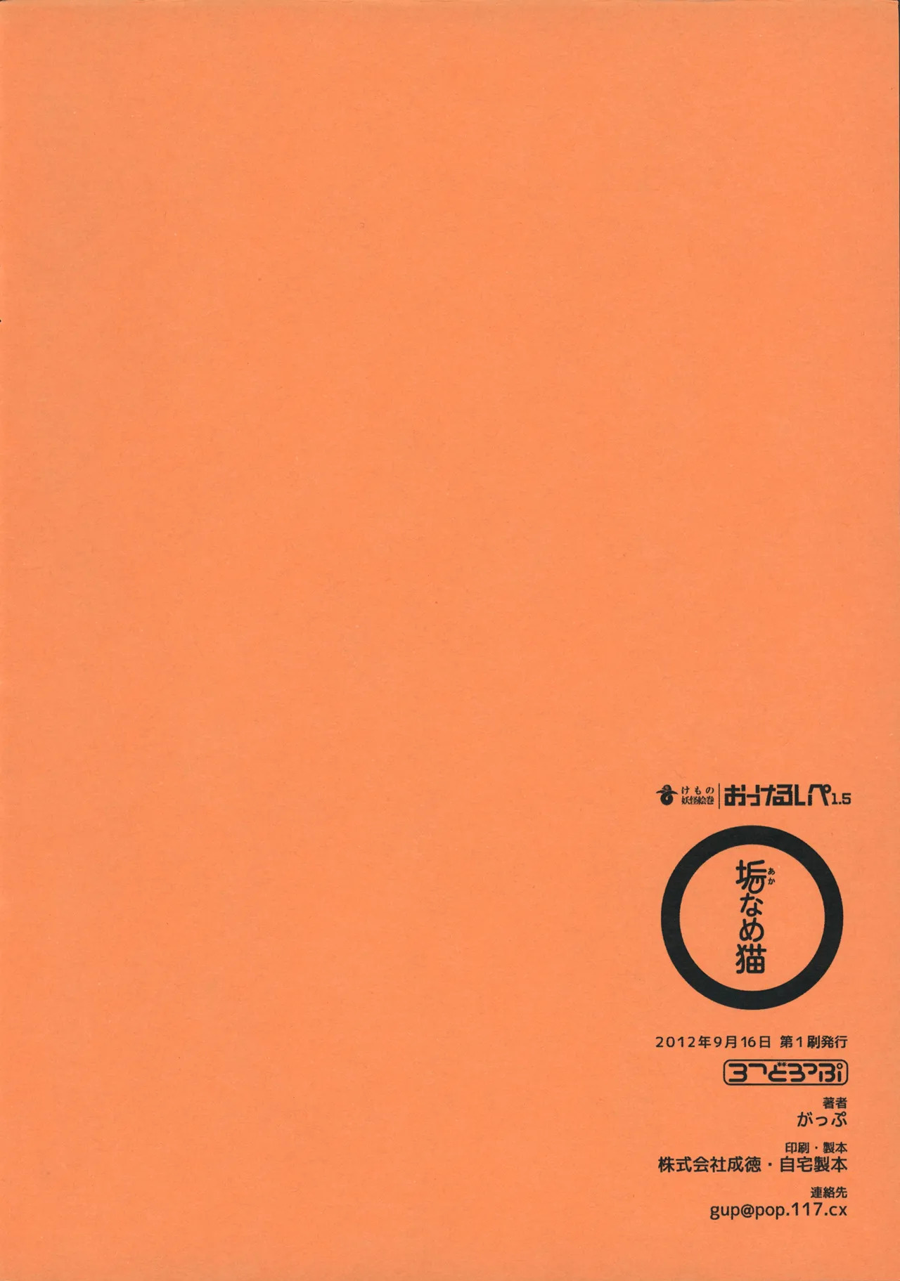 (関西けもケット) [ごぞうろっぷ (がっぷ)] 垢なめ猫Report (Kansai Kemoket) [Gozorop (Gup)] Akaname Neko