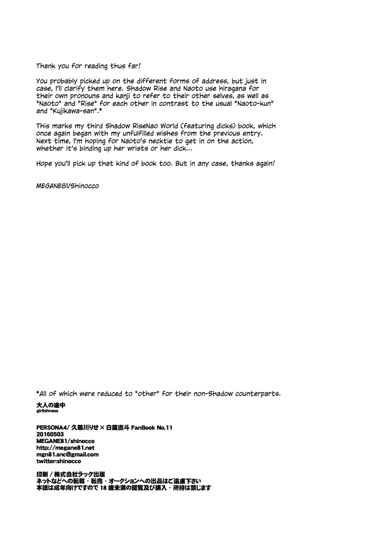 (ふたけっと12) [MEGANE81 (しのっこ)] 大人の途中 (ペルソナ4) [英訳]Report (Futaket 12) [MEGANE81 (Shinocco)] Otona no Tochuu | Girlishness (Persona 4) [English]