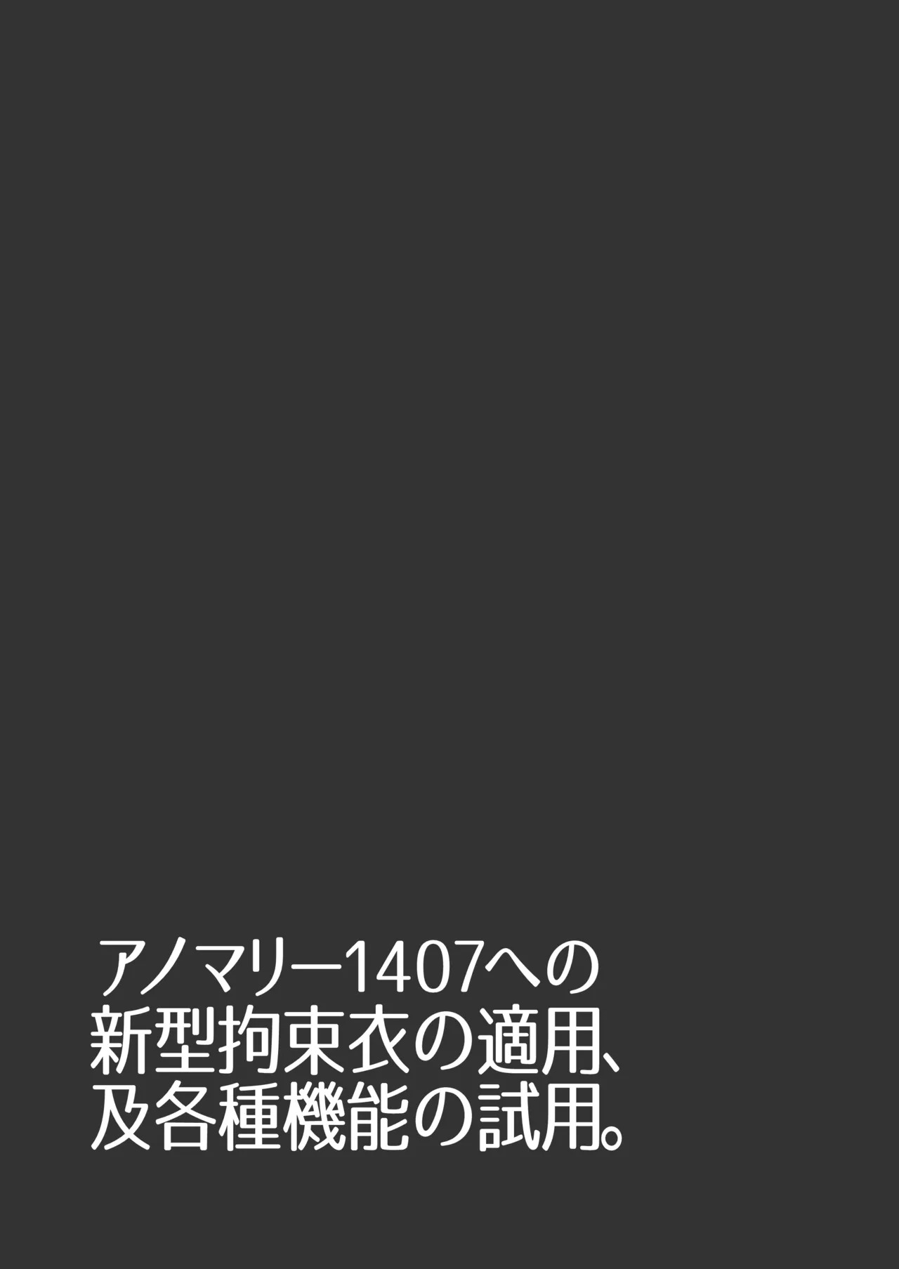 [NEUHAL Laboratory] アノマリー1407への新型拘束衣の適用、及各種機能の試用。Report [NEUHAL Laboratory] Anomarī 1407 e no Shingata Kōsokui no Tekiyō, Oyobi Kakushu Kinō no Shiyō