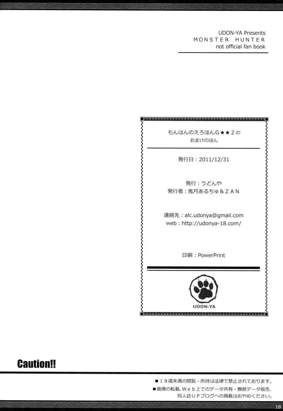 (C81) [うどんや (鬼月あるちゅ)] もんはんのえろほんG★★2のおまけのほん (モンスターハンター) [Decensored by 渣渣汉化组]