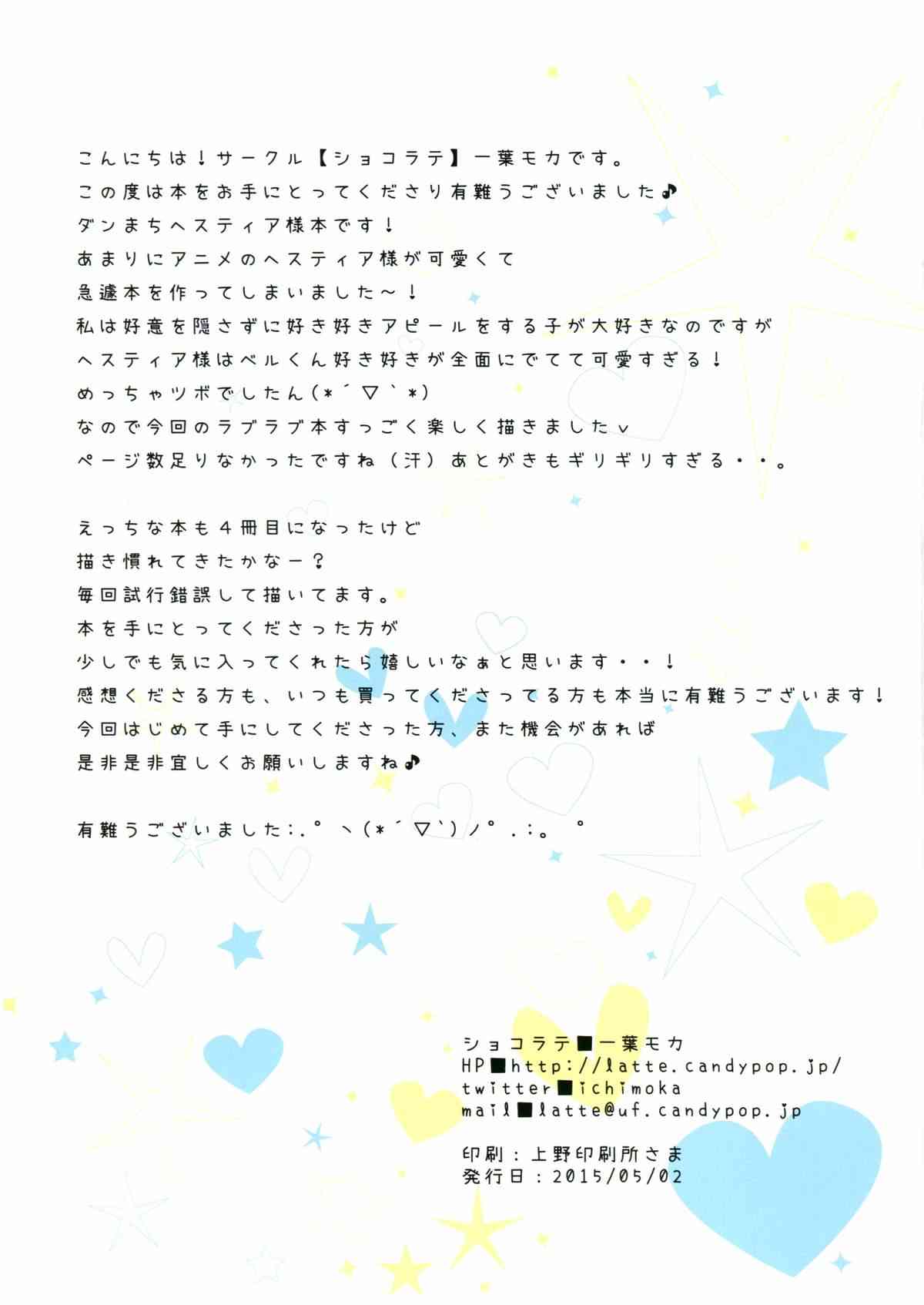 (COMIC1☆9) [ショコラテ (一葉モカ)] ヘスティア様とはじめての (ダンジョンに出会いを求めるのは間違っているだろうか)