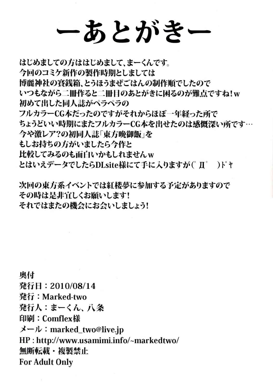 (C78) [Marked-two (まーくん)] とうほうまぜごはん (東方Project)Report (C78) [Marked-two (Maa-kun)] Touhou Maze Gohan (Touhou Project)