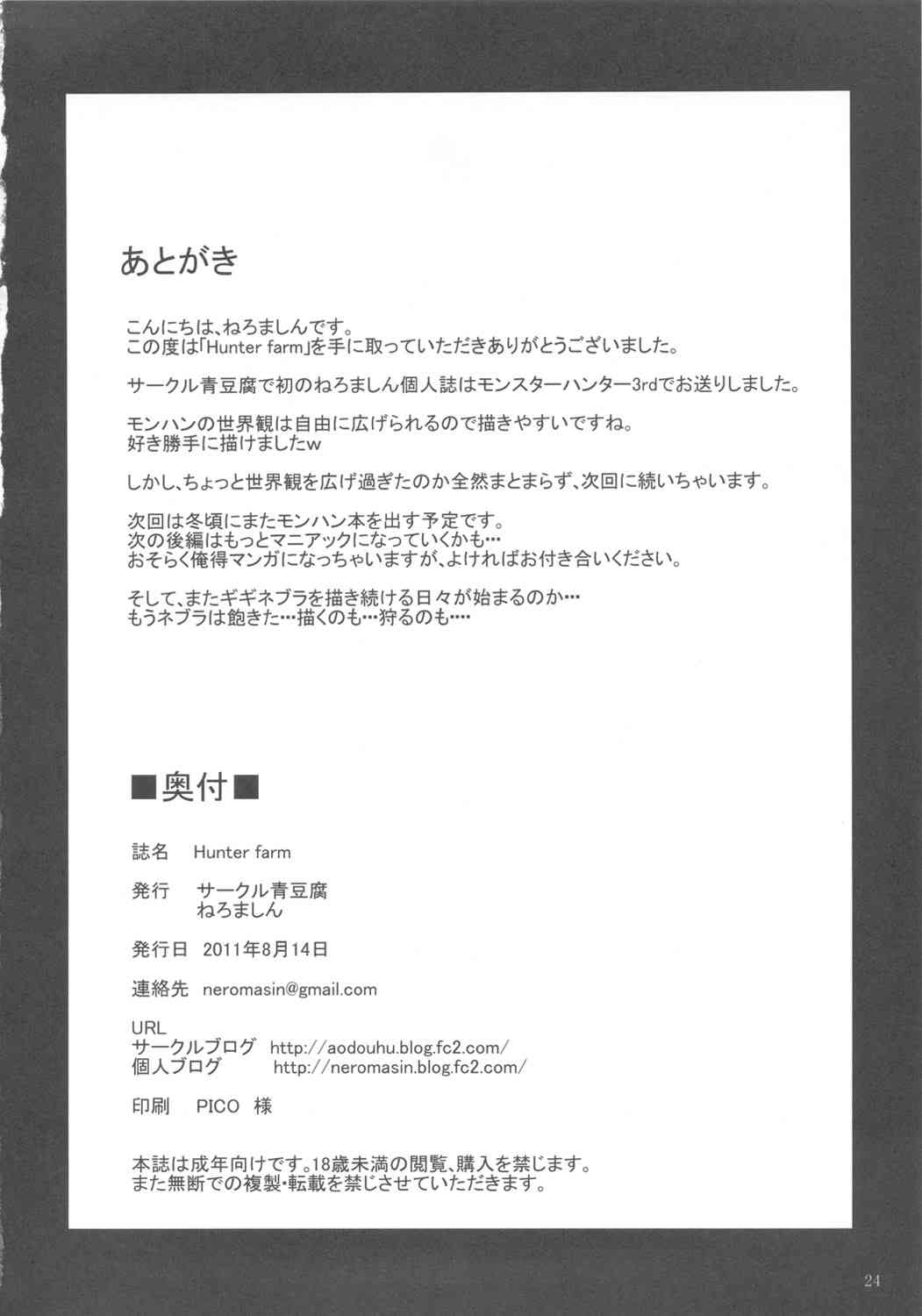 (C80) [青豆腐(ねろましん)] Hunter farm (モンスターハンター)