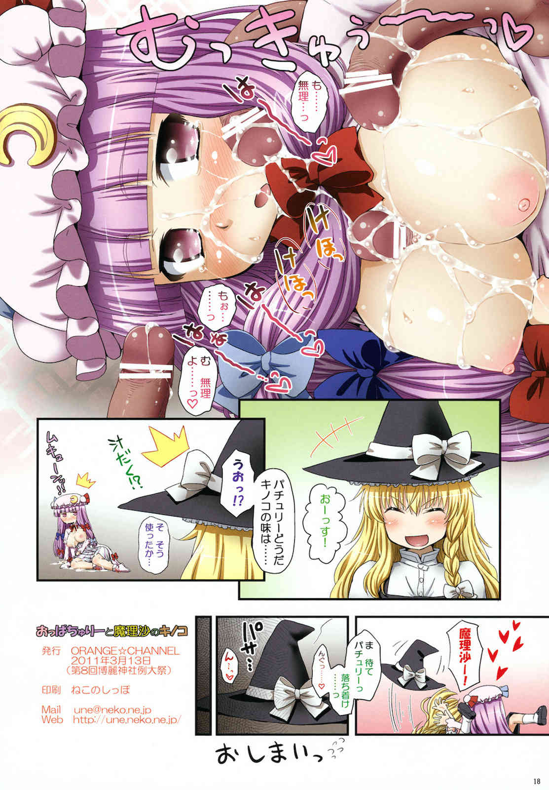 (例大祭8) (同人誌) [ORANGE☆CHANNEL (アル・ラ・ウネ)] おっぱちゅりーと魔理沙のキノコ (東方)Report (Reitaisai 8) [ORANGE☆CHANNEL (Aru Ra Une)] Oppatchouli to Marisa no Kinoko (Touhou Project)