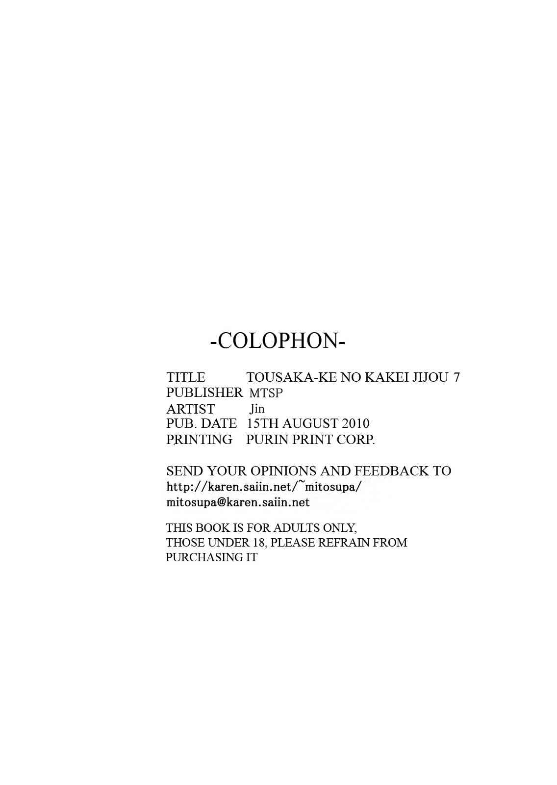 Report (C78) [MTSP (Jin)] Tohsaka-ke no Kakei Jijou 7 (Fate/stay night) [English] [Ayane]