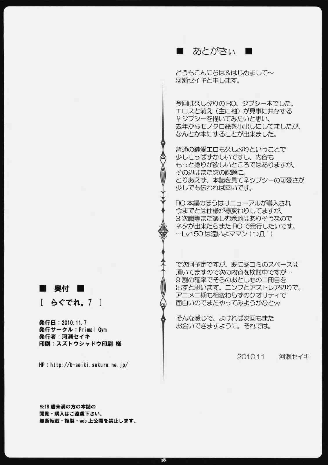 (同人誌) [Primal Gym (河瀬セイキ)] らぐでれ。7 (ラグナロクオンライン)Report [Primal Gym (Kawase Seiki)] Rag Dere 7 (Ragnarok Online)