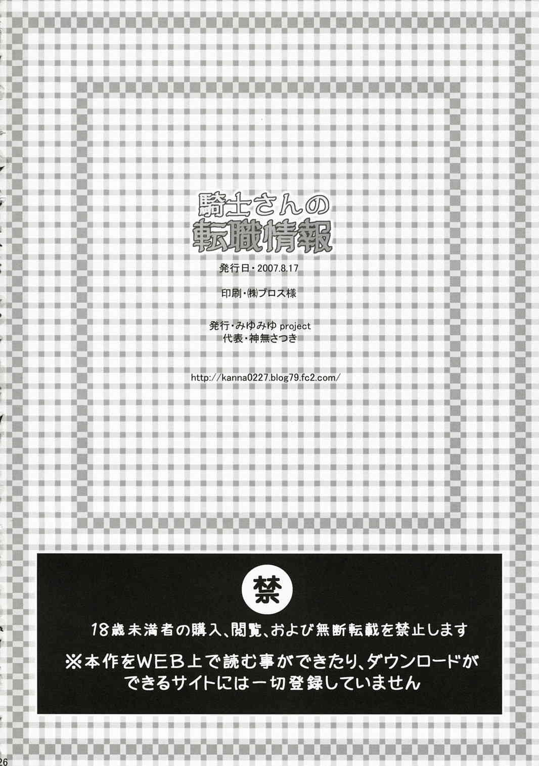 (C72) [みゆみゆProject (神無さつき)] 騎士さんの転職情報 (ラグナロクオンライン) [英訳]Report (C72) [Miyumiyu Project (Kanna Satsuki)] Kishi-san no Tenshoku Jouhou (Ragnarok Online) [English] [Slayerjammer]