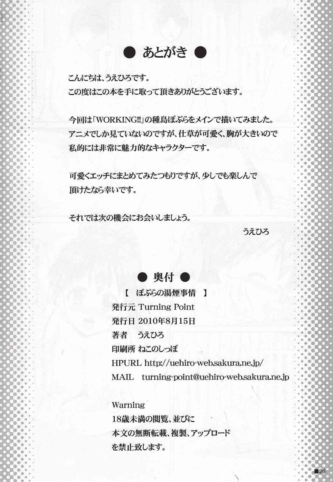 (C78) [Turning Point (うえひろ)] ぽぷらの湯煙事情 (WORKING!!)Report (C78) [Turning Point (Uehiro)] Poplar no Yukemuri Jijou (WORKING!!)