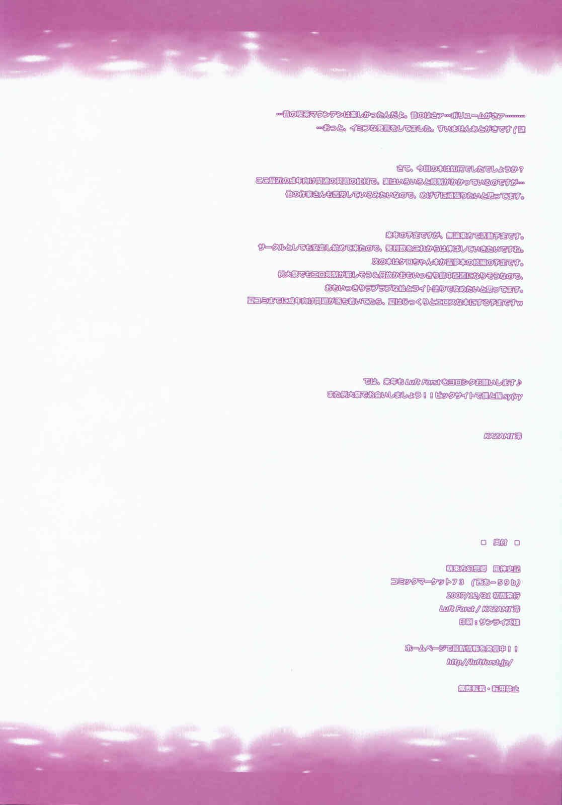 (同人誌) [Luft Forst] 萌東方幻想郷 風神史記 (東方、微エロ)Report [Luft Frost] Moe touhou genshoukyou fuujinshiki (touhou)
