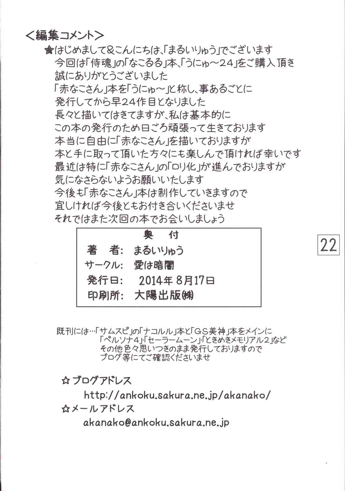 [愛は暗闇 (まるいりゅう)] うにゅ~24 (サムライスピリッツ) [DL版]Report [Ai wa Kurayami (Marui Ryuu)] Unyu~ 24 (Samurai Spirits) [Digital]